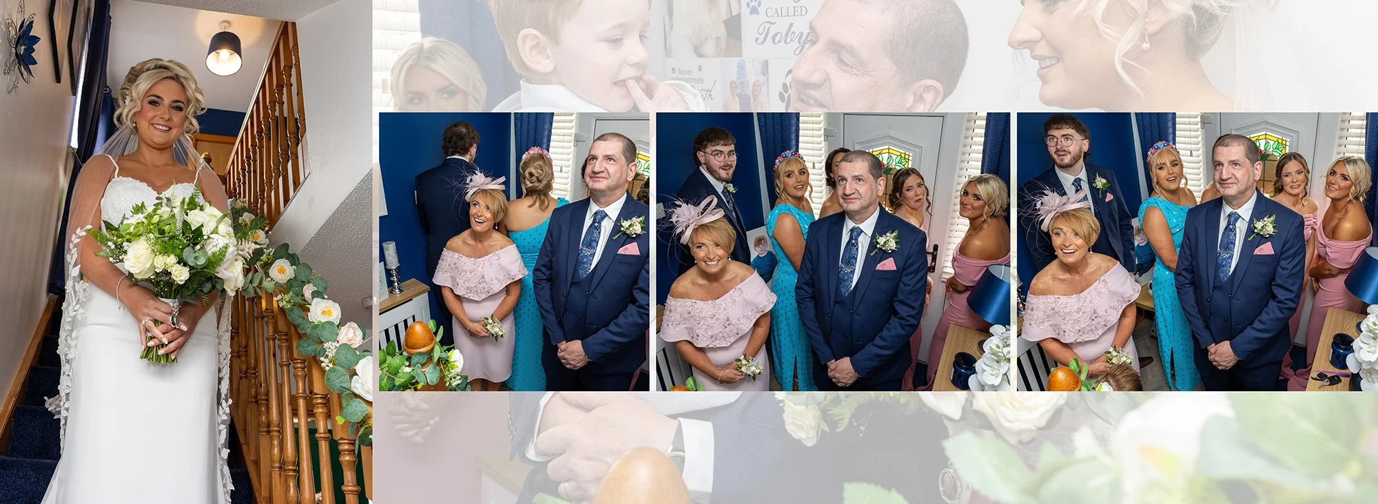 Usually one big image with a couple of smaller ones. This is where you throw your hands in the air and think we did it, while I do my best impression of speed-walking backwards. If I fall over, I promise it’s just to make you laugh. Confetti chaos encouraged — but don’t tell the minister I said that 😉